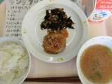 今日の給食は、ごはん、牛乳、和風ハンバーグ、ひじきの煮つけ、かぶのすりながし汁で...
