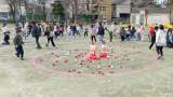 集会委員会の児童が企画した「大豆玉入れゲーム」を行いました。低学年、中学年、高学...