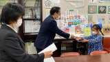 校長は、努力と協力についてお話し、クラスの代表児童に修了証を渡しました。