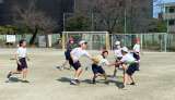 「タグラグビー」の学習に取り組んでいます。チームで作戦を考え、成功して得点できた...