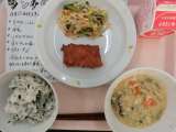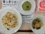 今日の給食は、チャーハン、牛乳、華風サラダ、よもぎ蒸しパンです。 5月5日が端...