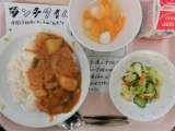 今日の給食は、チキンカレーライス、牛乳、フレンチサラダ、フルーツ白玉です。 ...