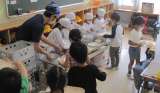 衛生管理のもと、自分たちで協力して給食の準備をしているとろです。給食当番の活動に...