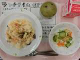 今日の給食は、シーフードピラフ、牛乳、ハニーサラダ、よもぎ蒸しパンです。 今...