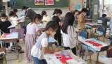 「龍神太鼓」の模様を表現しました。今日は、絵の具を使用して、龍の顔と鱗の仕上げを...