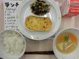 今日の給食は、ごはん、牛乳、五目卵焼き、ちくわ入り磯部和え、じゃがいもとスナップ...