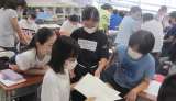 選挙ポスターを見て候補者を選び、緊張した面持ちで投票しました。担任が責任をもって...