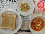 今日の給食は、セサミトースト、牛乳、ツナと枝豆のサラダ、ミネストローネスープです...