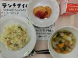 今日の給食は、シーフードピラフ、牛乳、豆腐のナゲット、かぶのスープです。 今日...