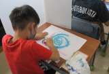 「ぼかし遊び」の学習をしています。テーマは『ゆめの せかい』です。丸くこする術、...
