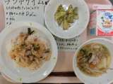 今日の給食は、ごはん、牛乳、あじフライ、和風サラダ、わかめとじゃがいものみそ汁で...