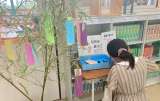 子どもたちが短冊に願いごとを書いています。心温まる願いごとがいっぱい!図書室前に...