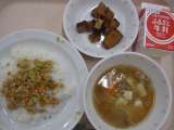 今日の給食 そぼろ丼 牛乳 大学いも 田舎汁 産地情報 しょうが 高知 に...