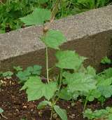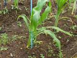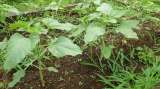 ヒマワリの背丈がのび、ホウセンカも雑草の合間に元気に育っています。(6月26日)