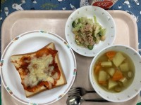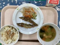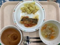 有機米ごはん牛乳魚のごまだれかけ野菜のおかかあえじゃがいものみそ汁今日のごはんは...