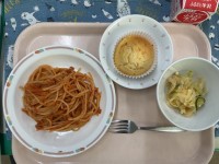 スパゲッティボンゴレロッソ牛乳チーズいりイタリアンサラダミルクマフィン
