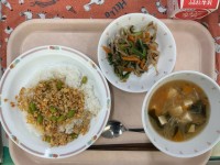 四色そぼろ丼牛乳もやしのおひたし切り干し大根のみそ汁