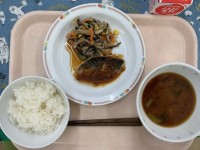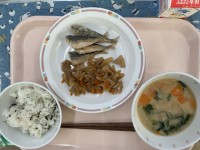 わかめごはん牛乳豆あじのからあげれんこんのきんぴら豆乳いりみそ汁今日のみそ汁は豆...