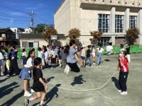 体育朝会で長縄跳びをやりました。クラスごとに最高記録を目指し、声をかけ合いながら...