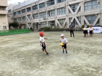 ブラックラムズ東京の方をお招きし、タグラグビーについて教えていただきました。子ど...