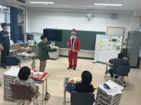 市販のロールケーキに生クリームやチョコレート、マシュマロなどをトッピングしてケーキを作りました。作っているときから、「早く食べたい!」と楽しみな様子でした。作ったケーキは、給食の時間中にサンタクロース...
