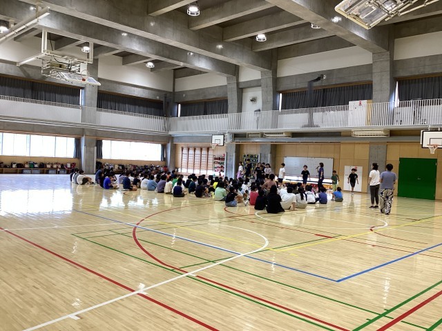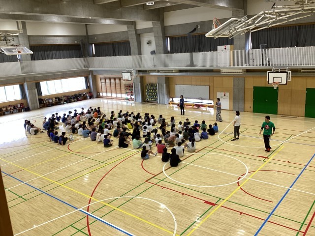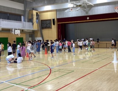 5年生は、今日着衣泳の予定でしたが、残念ながら雨。だからというわけではないですが、体育館で「学年レク」をしました。学年みんなで鬼ごっこやじゃんけん列車、ドッジボールなどをして大盛り上がり。楽しむことは得意分野の5年生。圧巻は学年全員での「ハンカチ落とし」。通常、教室などで比較的少人数でやることが多いハンカチ落としですが、学年全体でできるかな?とチャレンジしてみたところ、ハンカチを2つにしてやってみたら大成功。みんなで楽しいひと時を過ごしました。