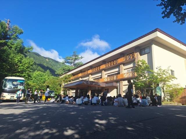子どもたちは比較的よく眠れたようです。各自朝の支度をし、朝会へ。