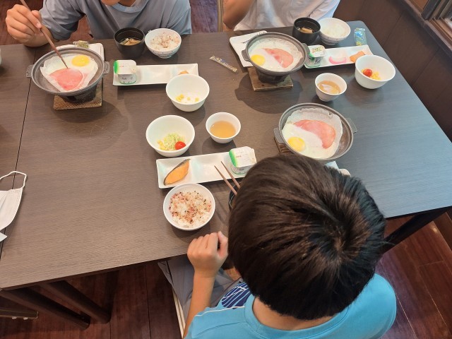 朝食は、朝の定番メニュー。おかわりをする子も多くしっかり食べられた子が多かったようです。
