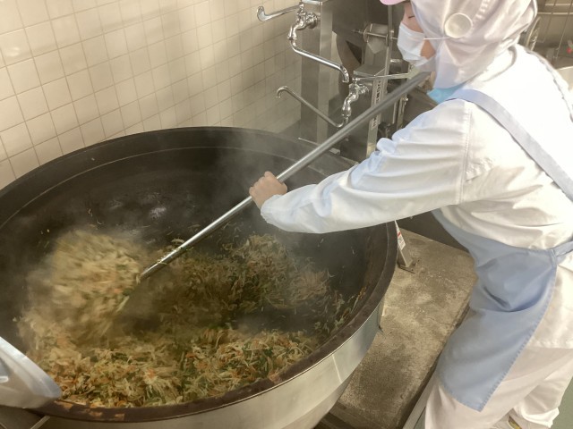 チャーホーサイは、元々中国の料理で野菜と肉の炒め物のことをいいます。豚肉とにんじん、キャベツ、もやしなどの野菜を炒め、最後に春雨を入れて炒め合わせ、塩こしょうとごま油で味をつけて仕上げます。品川区の給食で大人気のメニューだそうです。ぜひ食べてみてください。