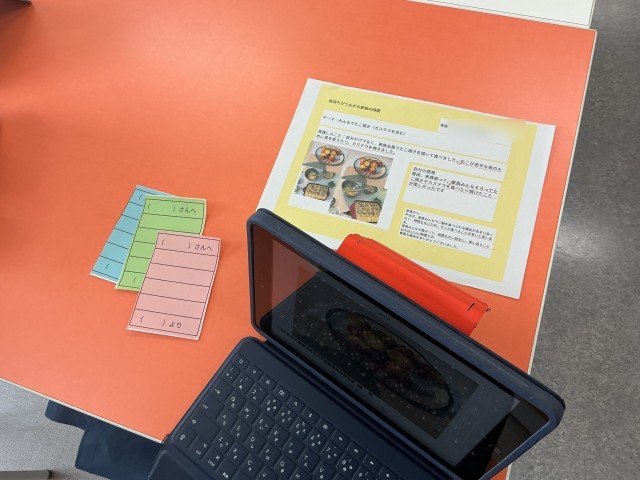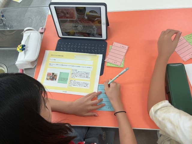 夏休み中、5年生が家族のために計画した会食の場を、それぞれの家庭で実践したことのレポートです。