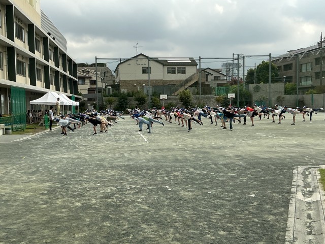 6年生は、朝の時間を使って運動会の表現種目に向けての基礎準備。