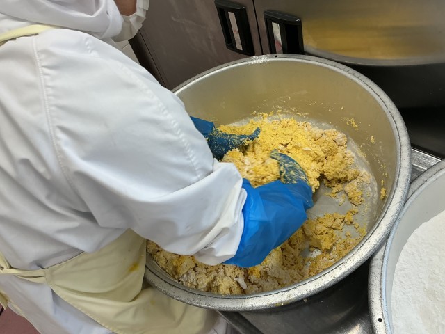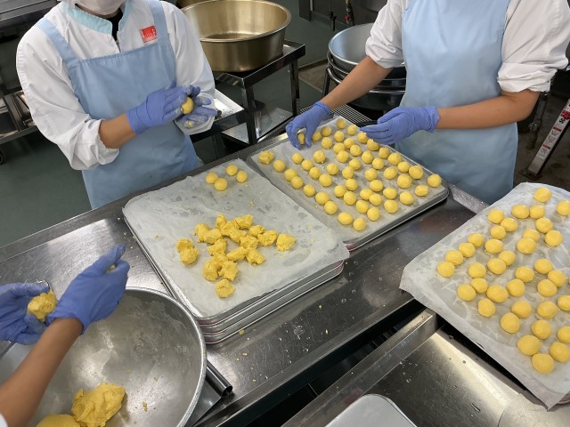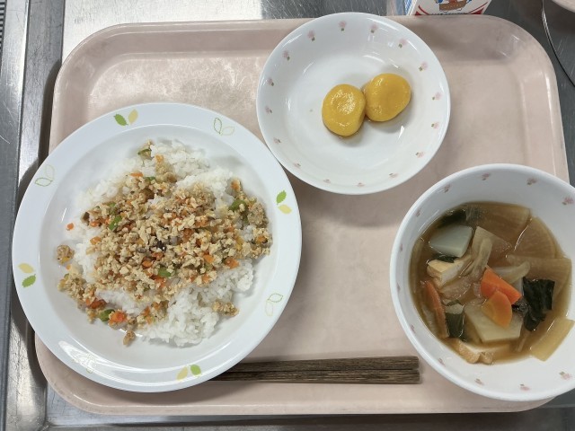 今日は「十五夜」です。十五夜には、お月見だんごやすすき、秋に収穫される里芋などをお供えします。給食では、かぼちゃを白玉だんごにまぜ、黄色い満月に見立てたお月見団子を作りました。