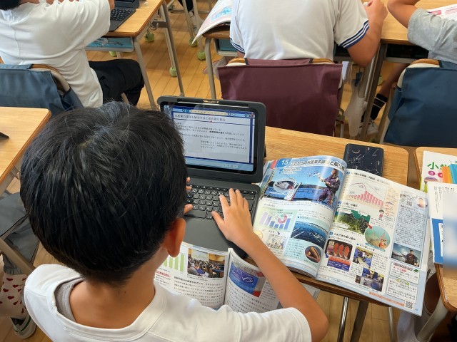 5年生の社会科では、これまで水産業について学習してきました。魚の獲り方や水揚げの状況、流通などさまざまな角度から日本の水産業の現状について、共通の課題をもった上での自由進度学習という形で進めてきました。そろそろ学習もまとめの段階。これまで学習してきた中で見えてきた日本の水産業の課題について、子どもたちなりに解決策を考えてみました。例えば働く人の問題。漁業に携わる方の減少と高齢化をどう克服していったらよいのか難しい問題です。子どもたちから出たのは、給料を上げる→そのためには安定した漁獲量→養殖を盛んにする といった解決法。最近ではAIを使った養殖というものも聞かれるようになりました。また、養殖の技術も進み必ずしも「天然物>養殖物」ではなく、消費者側の意識を変えていくことが漁業の就業問題の解決の糸口になるかもしれません。これまでしっかりと学習してきた子どもたち。課題の解決の方法にも彼らなりの考えが、学習の成果として反映されているようにも思います。