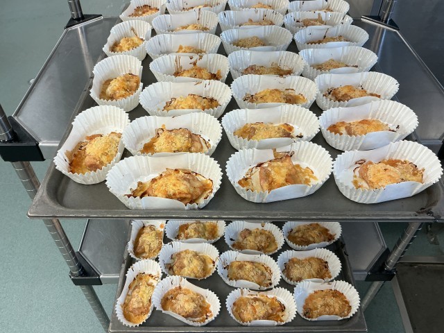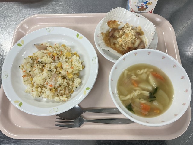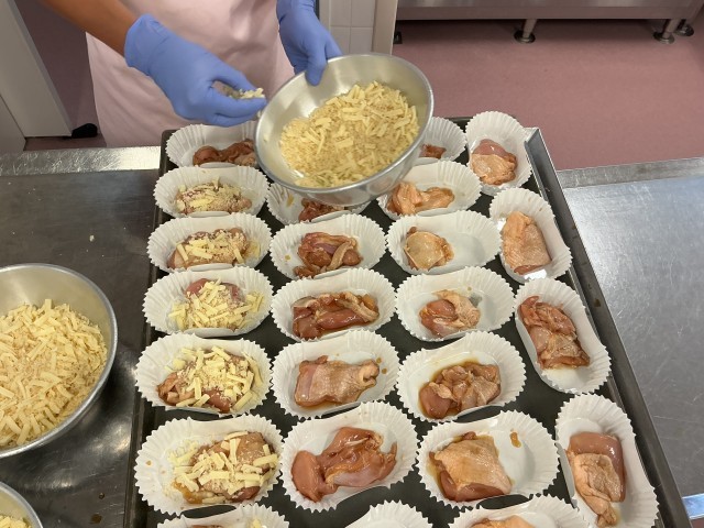 鶏肉のチーズ焼きは、鶏肉をにんにく、しょうゆ、さとう、みりんを合わせたものに漬け込んだ後、パン粉とチーズをのせてオーブンで焼きました。甘辛い味付けとチーズの香ばしさで美味しく食べられます。