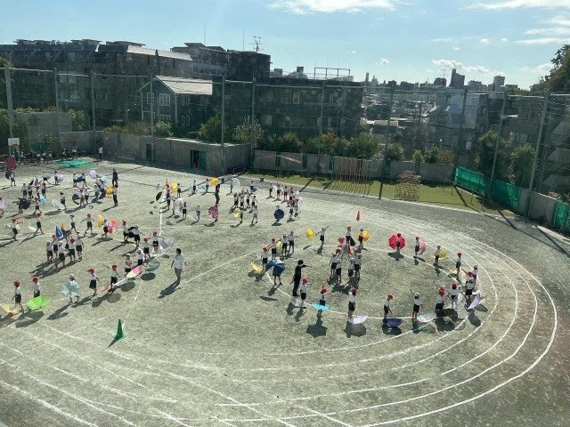 2年生は、表現「みんながいるから大丈夫!✌️」の練習。校庭で、それぞれの場面での踊る位置の確認をし、実際に使う傘を使って練習をしていました。そして、細かな動きを確認しながら完成に向けて取り組んでいました。