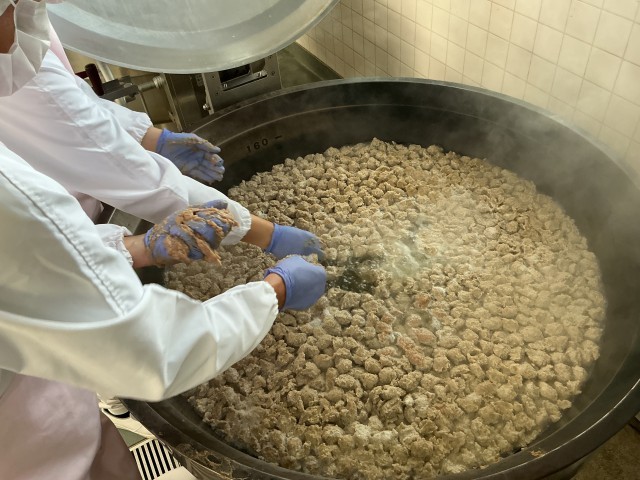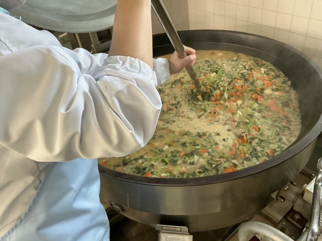「つみれ」という名前は、「つみ入れる(ちぎって入れる)」という言葉が元になっているそうです。今日は、いわしとたらのすり身にしょうがや長ねぎを合わせたものを少しずつちぎって汁に入れ、つみれを作りました。魚のうま味たっぷりの汁をぜひ味わってください。