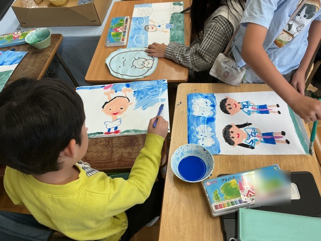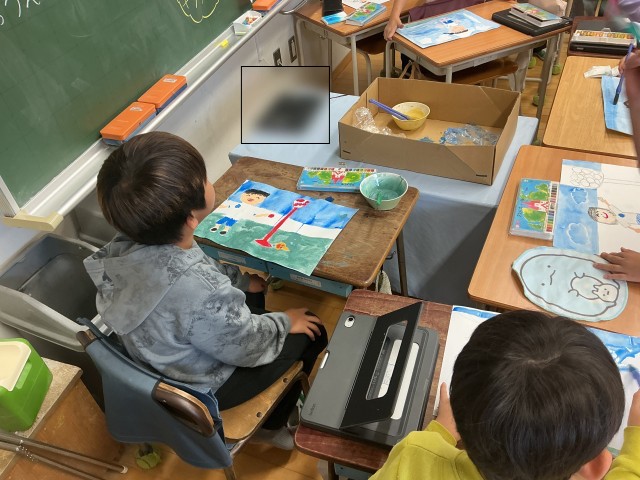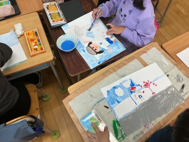 運動会 頑張ったよ 公開日 2025/10/23 更新日 2025/10/23 校長室より 2年生は、運動会の絵を描きました。テーマは、「運動会で自分がキラキラと輝いた瞬間」。2年生は、かけっこ、玉入れ、傘を使った表現などに取り組みました。子どもたちは、約3週間、熱心に練習し、当日は見ていただいたように一生懸命やり切りました。そんな2年生が「自分が」輝いたと思う瞬間を絵にしてみました。それぞれ一生懸命取り組んだので、ここという場面があるようです。クレパスや絵の具を使って力強く描いていました。 いいね(2)