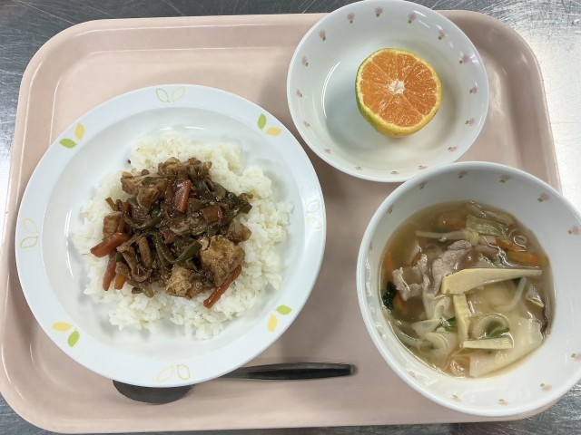 回鍋肉は、中国の四川省という地方の料理です。四川料理は辛い料理が多いことが特徴で、麻婆豆腐やチンジャオロースなども四川料理です。給食では辛みは控えめに、テンメンジャンという甘辛い味噌をたっぷり使って食べやすく仕上げました。