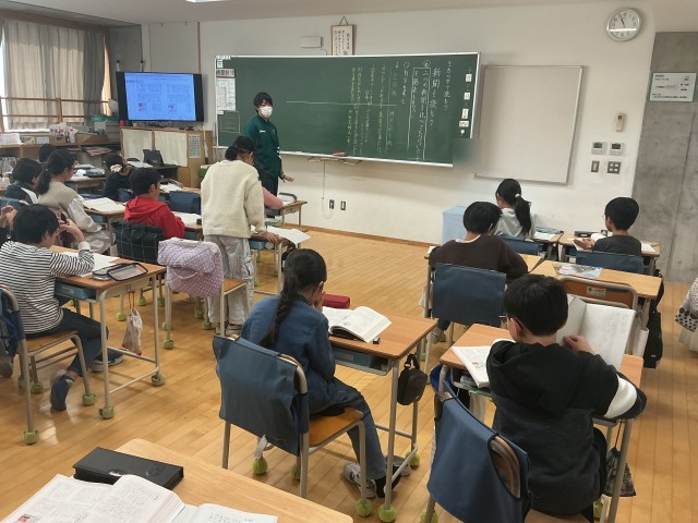 5年生の教室では、国語の学習「新聞を読もう」で全国紙と地方紙を読み比べる、違いを考えるということをしていました。新聞も読書と同じように写真はあっても映像はない、情報がリアルタイムではないなどの点はありますが、次々に映像が進んでいってしまうのと比べて、自分のペースで考えながら読み進めていくことができます。