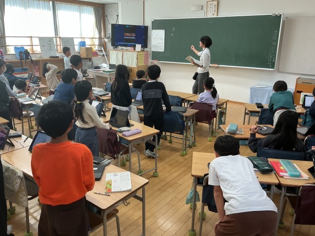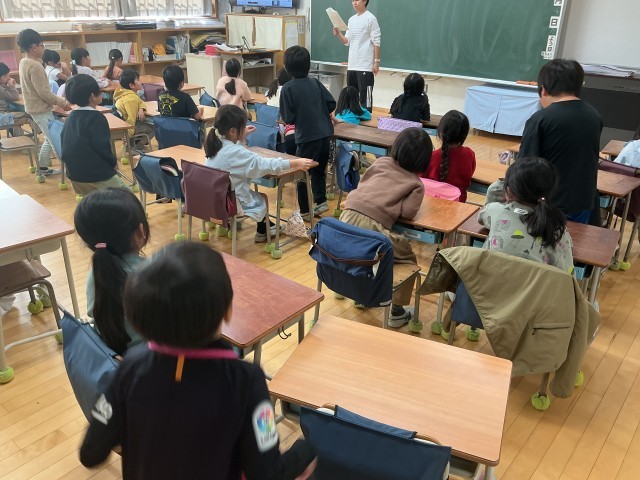 1年生は、発表の中で、国語で学習した季節の言葉をラップ調で発表するコーナーを設ける計画。それに向けて、ラップ調のリズムに乗せて言葉を言う練習をしていました。2年生は、国語で学習したスイミーを題材に発表する計画。その中で使う歌の練習を始めたところでした。