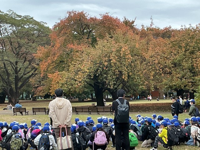 3年生 社会科見学 その5 公開日 2025/11/11 更新日 2025/11/11 校長室より 大田市場の後は、砧公園でお待ちかねのお弁当タイム。大田市場では、歩いたり、一生懸命見学したりで「お腹がすいたよぉ」という声が聞こえていました。紅葉はもう少しという感じでしたが、お弁当を美味しくいただきました。 いいね(3)