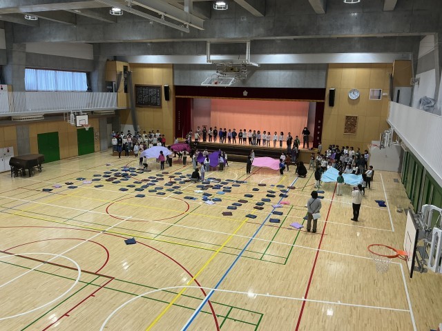 1年生は、体育館で学年練習。実際にステージを使って練習していました。季節によって担当があり、自分の発表のタイミングを掴むのがなかなか難しそうです。