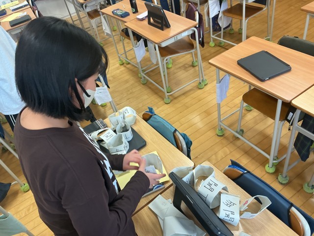 5年生のオープニング担当は、舞台小物作り。TVカメラやガンマイク、腕章などのアイテムを作っていました。ほかの5年生の教室では、場面ごとの練習。場面によっても表現方法が違い、子どもたちの工夫が感じられます。場面ごとに順番にすくもりルームに行って少し広い場所で通し練習、「バトル」を繰り広げていました。