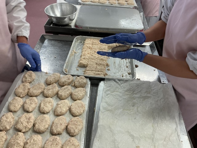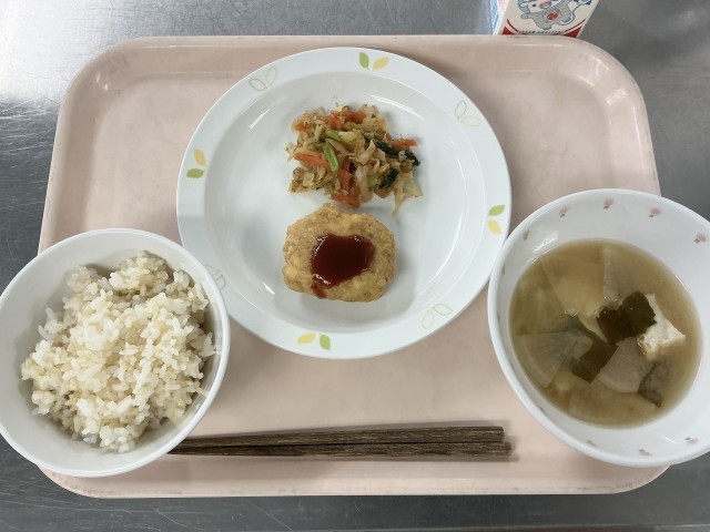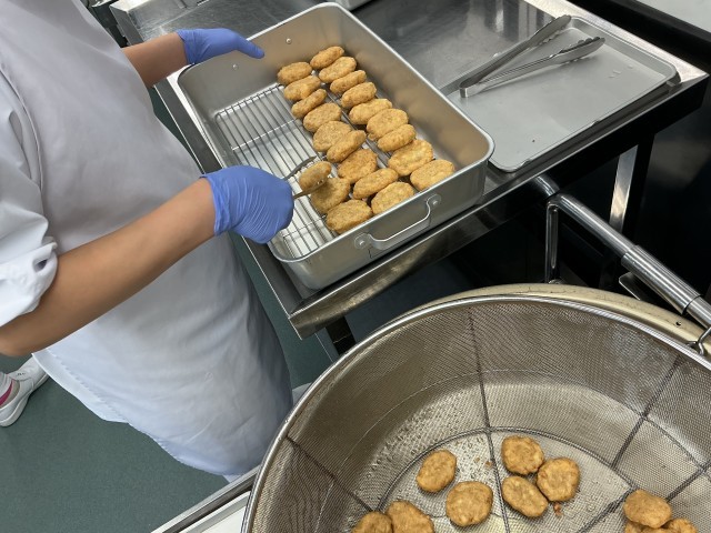 今日は、読書月間の給食コラボ最終日です。「ふしぎ駄菓子屋銭天堂」より、「いいものナゲット」を作りました。とり肉ととうふ、にんにく、調味料をよく混ぜてたねを作り、油でカラッと揚げました。外はカリッと、中はふんわりとした美味しいナゲットが出来上がりました。内容が気になったら、ぜひ本を読んでみてください!