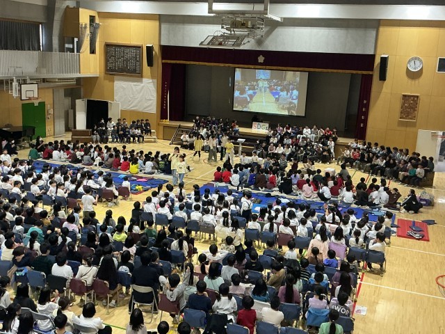 そして6年生。大阪万博がまだ記憶に新しい今、なかなかタイムリーな設定。子どもたちは「次はどこの国のパビリオンかな」「何が紹介されるのだろう」と期待しながら見入っていました。