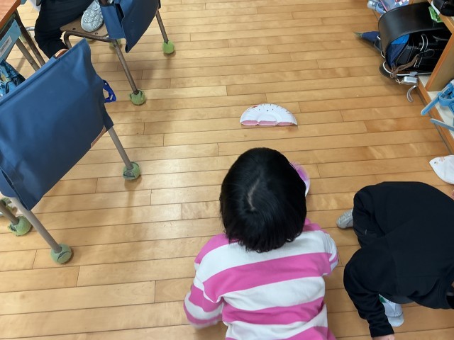 完成したものに風を送って楽しそうに進ませていました。作ったもので遊べるちょっと楽しい図工の時間でした。