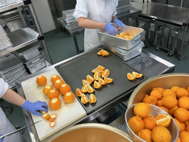 今日の果物は「デコポン」です。へたの周りが盛り上がった独特の形からこの名前がついたといわれています。今日のデコポンは熊本県産で、とても甘くてジューシーな味わいでした。