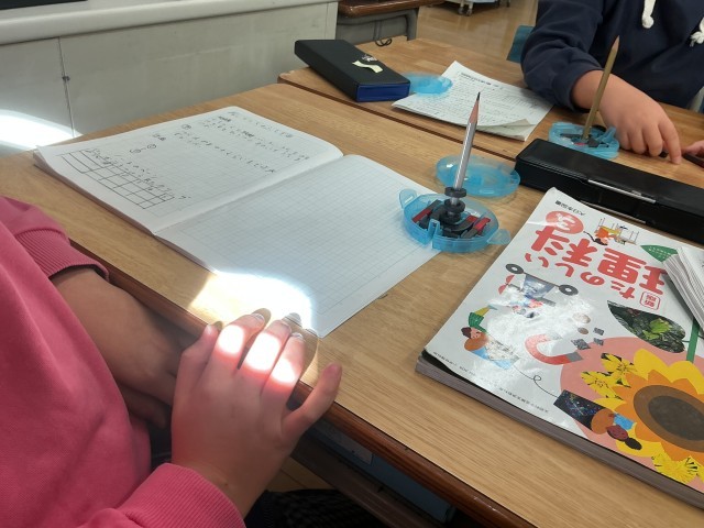 授業が始まりました。「ノートを用意してください。めあて(や問題)を黒板に書きます。ノートに写してください。」