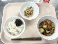 今日は、東京都の食材である「明日葉」を使ったパンを提供しました。東京都の島の一つである「八丈島」で加工された明日葉を粉末にしたものがパンに練り込まれています。パンはほんのり緑色をしていますが、明日葉特有の苦味はほとんど無く、美味しく食べられます。