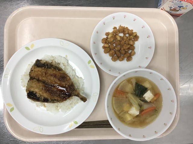 2月3日は節分です。今日は、節分にちなんでいわしや豆を使った献立にしました。